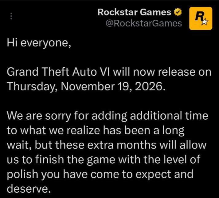 راکاستار گیمز رسماً اعلام کرد که انتشار بازی GTA VI بار دیگر به تعویق افتاده است. طبق اطلاعیه رسمی شرکت، این عنوان مورد انتظار تا تاریخ ۱۹ نوامبر ۲۰۲۶ (۲۸ آبان ۱۴۰۵) منتشر نخواهد شد. راکاستار در بیانیهای نوشت:«میدانیم که طرفداران مدت زیادی منتظر ماندند، اما این چند ماه اضافه برای تضمین کیفیت نهایی بازی […]